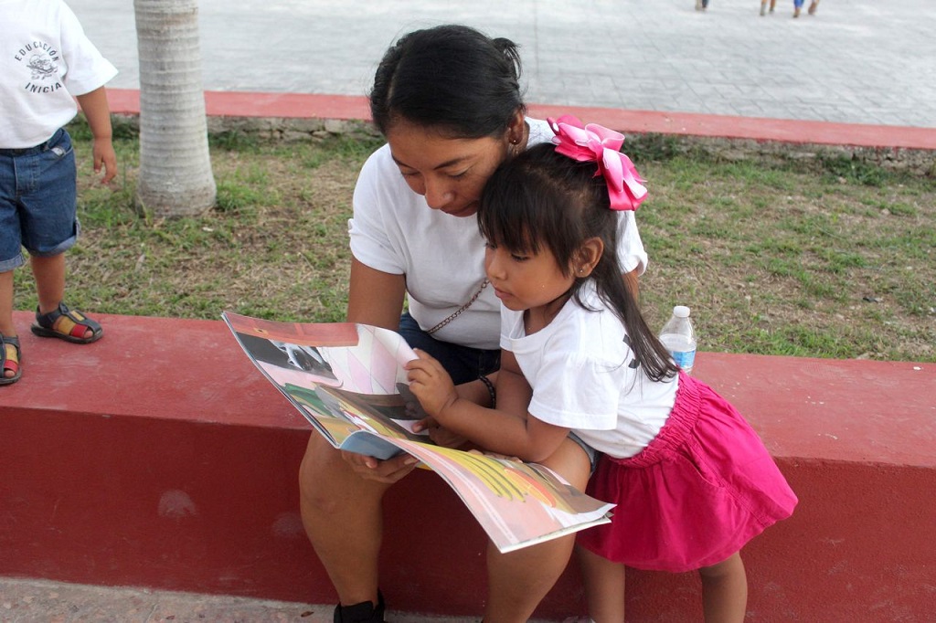 En esta feria titulada “Lecturando en comunidad”, se invitó a las familias a inculcar el disfrute por la lectura en las niñas y niños pequeños, comenzando con libros con ilustraciones y posteriormente con textos leídos y también, gozados por los cuidadores de los menores. Esta actividad se prevé realizar en 14 localidades que participan en el programa Educación Inicial No Escolarizado en el estado de Yucatán.