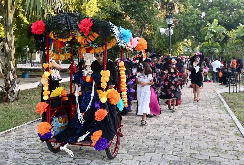 Mérida, Yucatán, a 30 de octubre del 2022.- La explanada del Centro Estatal de Bellas Artes de la Secretaría de Educación del Gobierno del Estado, fue el escenario ideal para reunir el talento de los estudiantes de Danza Folclórica Mexicana y Española, quienes protagonizaron un desfile y montaje dancístico alusivo al Día de Muertos.